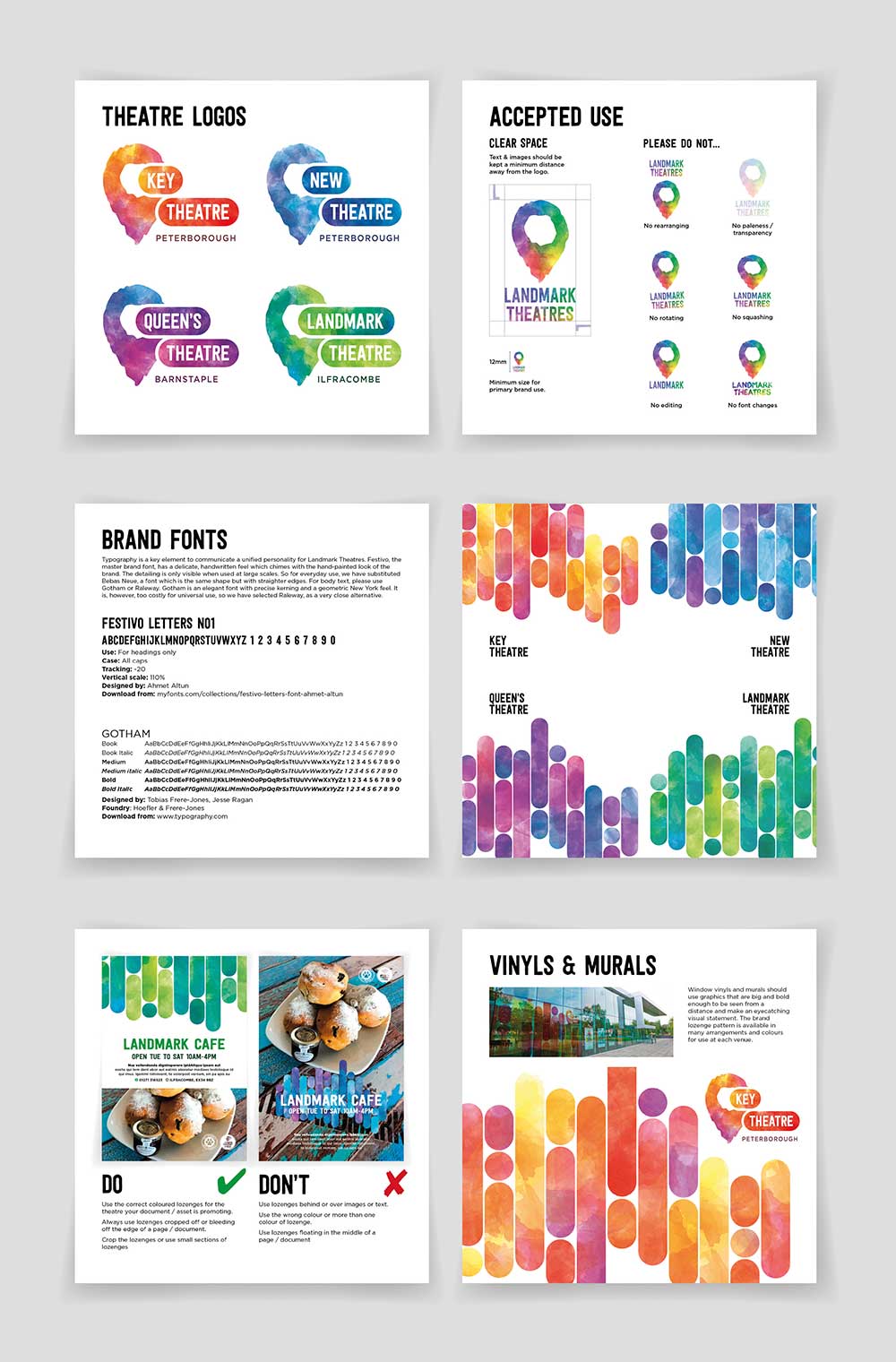 This watercolour branding designed for Landmark Theatres is one of our favourites. Especially since two of their theatres are right here in our home city, Peterborough. Here’s how the branding progressed from ink and paper to final guidelines.